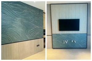 Wall decoration system: The TV decorative wall in the guest room is made of matte black brushed stainless steel with vertical line finishes. Through precise CNC bending technology, a three-dimensional geometric texture is formed, which not only echoes the Moorish patterns in Islamic architecture but also gives the space a modern and simple visual extension.