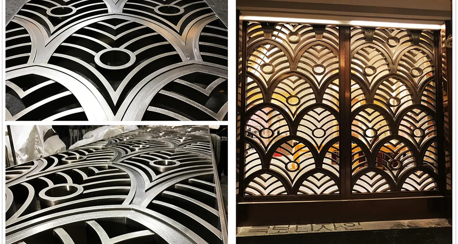 Hollowing process refers to the use of laser cutting to cut patterns on the surface of stainless steel materials to get the patterns we want. Stainless steel common stainless steel models are divided into 201#, 304#, 316#. The hollow screen made of 304# stainless steel plate has a wide range of applications, because the 304# stainless steel material has good ductility, brushed texture, and the superiority of polished mirror surface, and the price is also between these two materials.