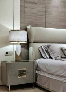 Stainless steel nigt table and light, the structure is mainly stainless steel, with corrosion resistance, high strength, strong and durable characteristics, can ensure that in a long time it will not deformation. From the appearance, the night table and lgiht is light, fashionable appearance, simple geometry, natural color performance, make the space is bright, and transparent and unconsciously completed the amplification of the space, let the bedroom more breathing feeling, visual continuous is one of the most outstanding of stainless steel.